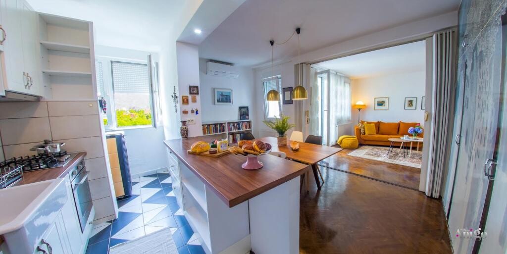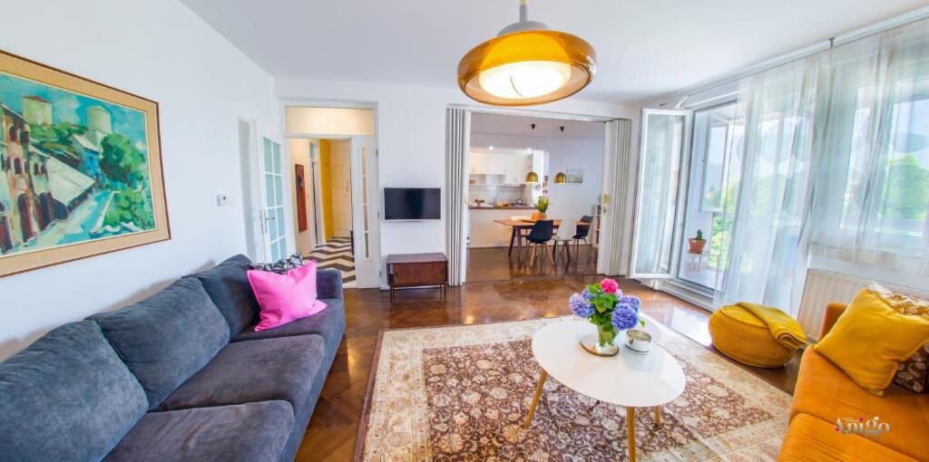 Welcome to Apartment Quince, a spacious, vibrant three-bedroom retreat in a tranquil neighborhood surrounded by the Radobolja River and lush greenery. Located on the 4th floor without an elevator, it offers stunning views from the private balcony.