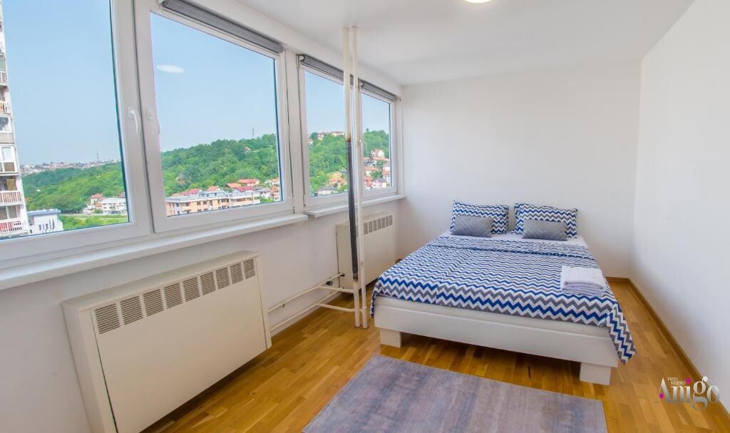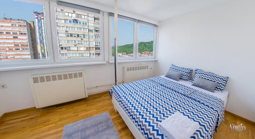 Apartment Venus is located just a 17-minute drive from Baščaršija, Sarajevo, in a nice neighborhood. Situated on the 12th floor with elevator, this brand-new apartment offers complimentary high-speed WiFi. The apartment features a spacious and modern living room with an open concept design, offering a great view of the city. It includes one bedroom with a double bed and a sofa bed in the living room, providing ample sleeping arrangements. The fully furnished kitchen is equipped with all the essentials, including a microwave, refrigerator, and electric kettle. The apartment also includes a well-appointed bathroom with all necessary amenities, such as toilet paper, a hairdryer, and towels.