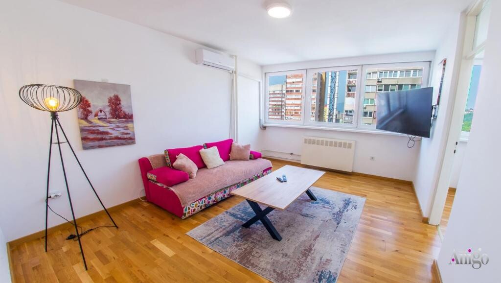 Designed to provide a comfortable and contemporary stay, Apartment Venus is thoughtfully furnished to ensure a pleasant experience. The spacious living room is perfect for relaxing after a day of exploring Sarajevo, and the high floor offers a stunning cityscape view.