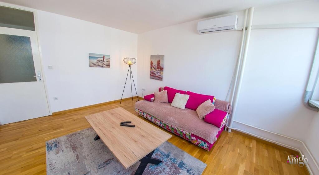 The apartment is located in the Dolac Malta neighborhood on Marka Marulića Street, in the central part of the city. It is conveniently close to the bus and train stations, as well as shopping centers and a 24/7 market. Supermarkets, bakeries, pharmacies, restaurants, numerous cafes, shisha bars, and newsstands are all within 50 meters of the apartment. Playgrounds and facilities for children, as well as sports halls for adults, are also nearby. Public transportation is easily accessible, with a tram stop and a bus stop just 150 meters away. You can reach any part of the city within 10 minutes by car. The old town is 15 minutes away by public transport, 5 minutes by car, and 20 minutes on foot.