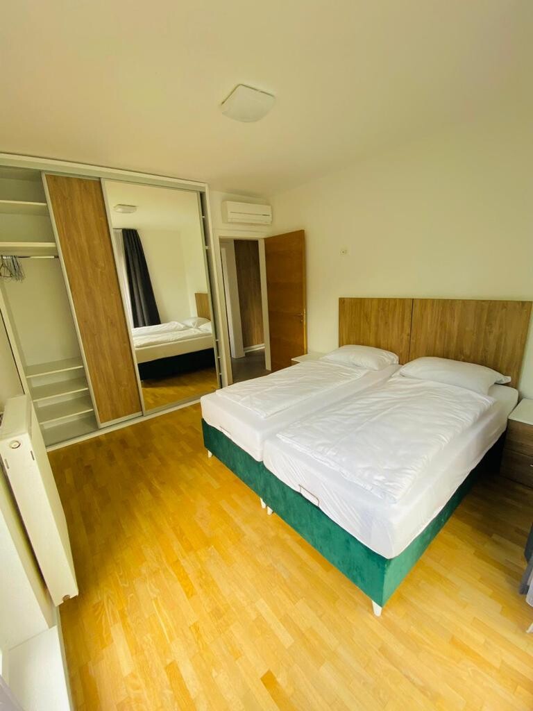 Ilidza River Apartments – 501 is a two bedroom apartment located on the fifth floor. It has a spacious living room with flat TV heating and air conditioning. There is a comfortable sofa which can be a sofa bed if needed. One of the bedrooms has a double bed, and the second bedroom has two single beds. All bedrooms have wardrobes and air conditioning.