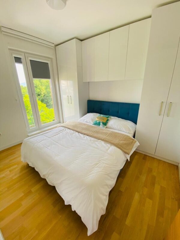 Ilidza River Apartments – 602 is a one bedroom apartment located on the sixth floor. It has a spacious living room with flat TV heating and air conditioning. There is a comfortable sofa which can be a sofa bed if needed. There is one bedroom with a double bed, wardrobe and air conditioning.
