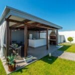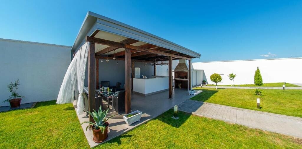 In the garden there is also an outdoor area for relaxing, sitting and dining, as well as barbecue facilities. This place is great for escaping into the shade from the intense heat. During your stay you may  enjoy some good food and drink, hanging out with family or friends. The outdoor area also has a bathroom.