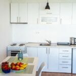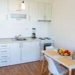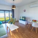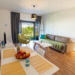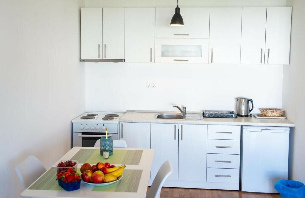 Both living rooms have sofas that can be used as comfortable sofa beds. All kitchens are open plan kitchens and are equipped to make it easier for guests to prepare food and drinks. The kitchens have a kettle, dishwasher, oven, stove, refrigerator, blender. Next to the kitchen there is a dining area.