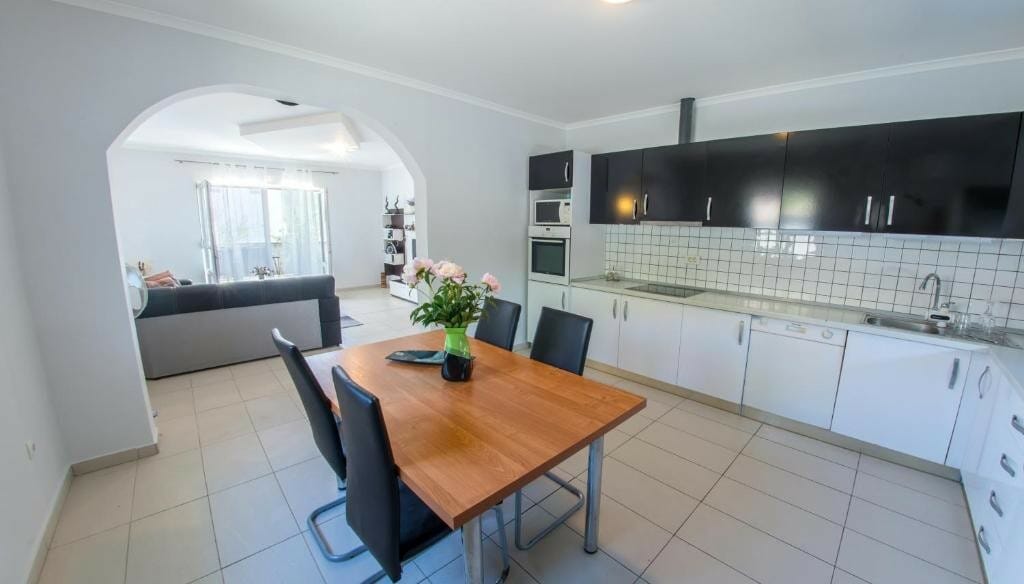 Villa Buna Breeze comfortably accommodates up to 9 people. The living room offers cable TV, a spacious Bluetooth speaker, a cozy sofa, and direct access to the terrace. The fully equipped kitchen includes a kettle, microwave, oven, and dishwasher for convenient food preparation. The terrace features an outdoor dining area, while another dining area with barbecue facilities provides a cool escape from the summer heat in Mostar.